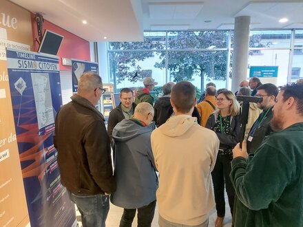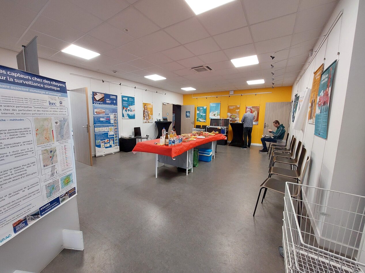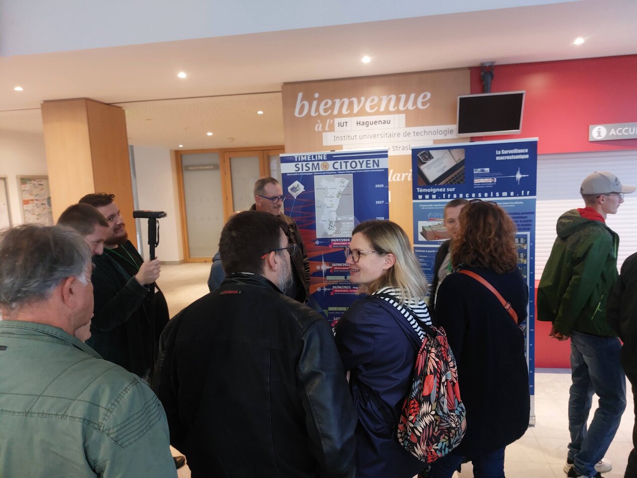 20 hébergeurs et accompagnants représentant 15 sites. Autour d’une collation, nous avons présenté les mêmes ateliers qu’à Mulhouse ainsi qu’un «Kakemono» résumant la chronologie du projet et du déploiement des stations. Les discussions se sont poursuivies par la présentation du réseau de l’Outre Forêt récemment installé et de l’utilisation des données pour caractériser les séismes induits de Rittershoffen qui ont eu lieu au début de l’été 2024.