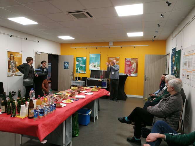 8 hebergeurs et accompagnants représentant 6 sites et deux personnes de la Nef Des Sciences. Nous avons débuté par une collation et des échanges autours d’ateliers
